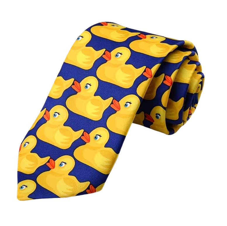 Deze vrolijke gele of blauwe stropdas, versierd met allemaal schattige eendjes, is hét perfecte cadeau voor iemand met humor en stijl! Of het nu voor een feestelijke gelegenheid, een nieuwe baan/functie, een grappige knipoog op kantoor of gewoon voor een echte eendenliefhebber is – deze das laat iedereen stralen met een vleugje speelsheid.
