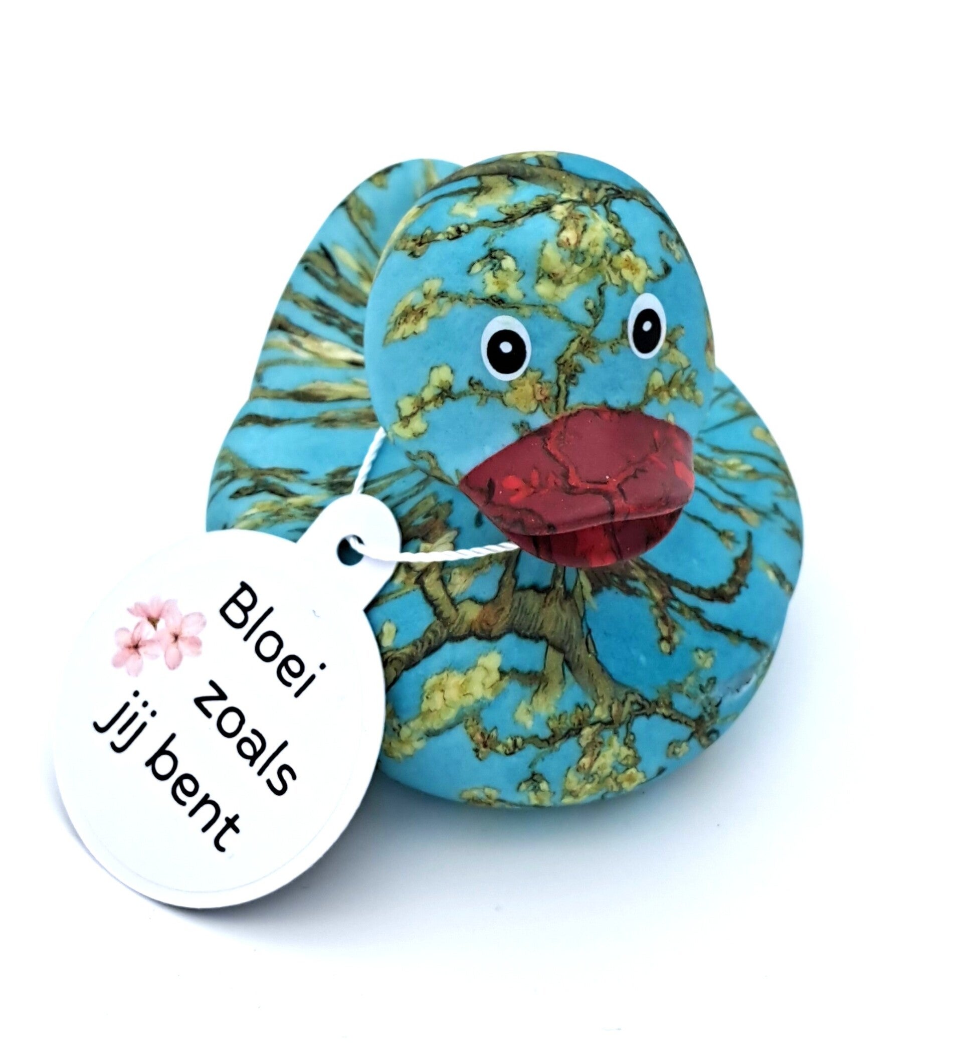 Wil jij iemand een liefdevol duwtje geven om te groeien en te bloeien zoals ‘ie is? Dit charmante badeendje, geïnspireerd op Van Gogh’s prachtige amandelbloesem, doet precies dat.