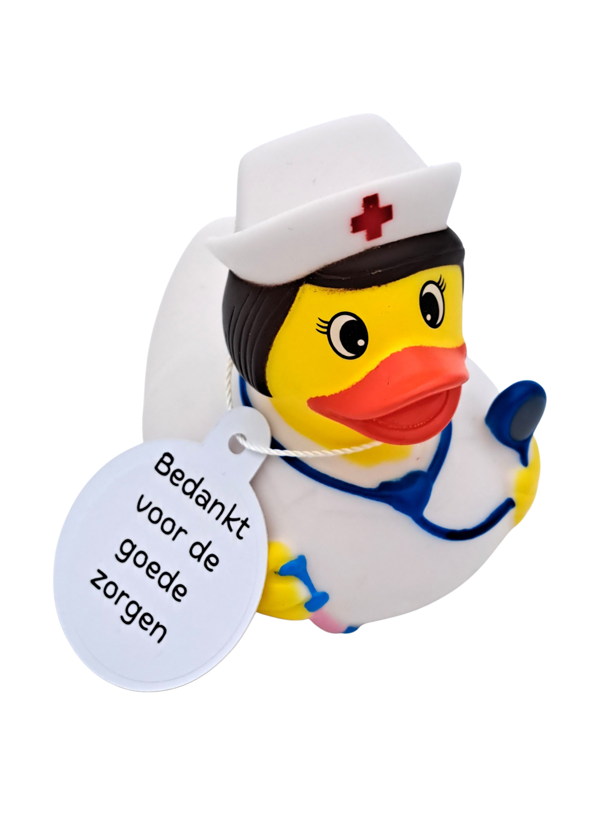 Een thermometer in de ene hand, een glimlach in de andere – en altijd klaar om te helpen. Deze eend is een ode aan alle zorgzame toppers.