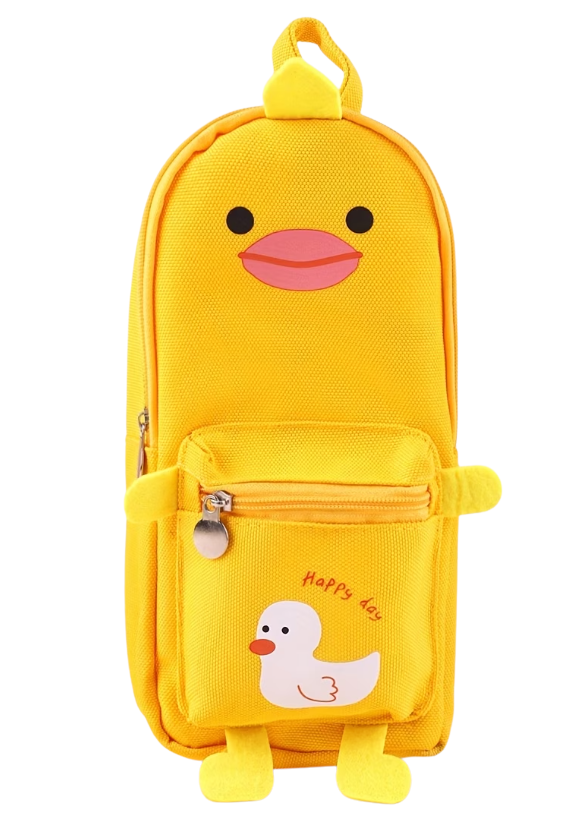 Met zijn hoogte van 20 cm is deze eend niet zomaar een etui. Hij is een trouw maatje dat stevig rechtop op het bureau blijft staan. Zo houdt hij de wacht over alle pennen, potloden en lievelingsstiften terwijl er hard gewerkt wordt in de klas.