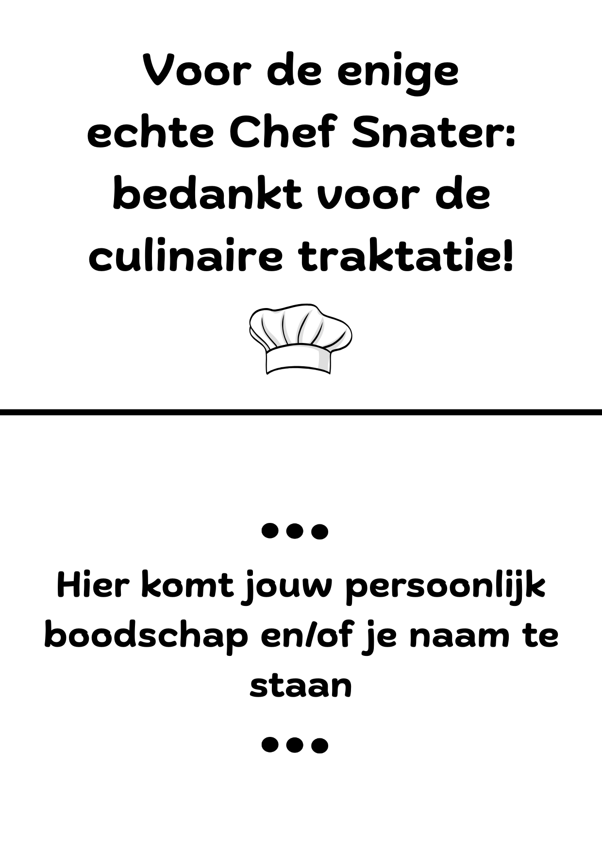 Slogan 1: "Voor de enige echte Chef Snater: bedankt voor de culinaire traktatie!"
